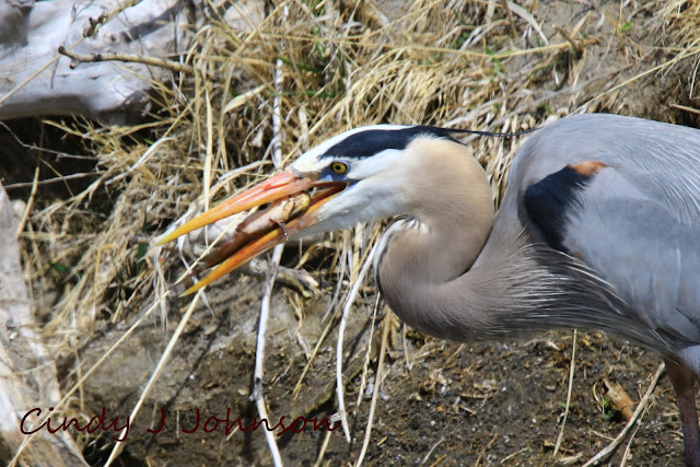 Here's more of that Great Blue Heron trying to get that fish down.
